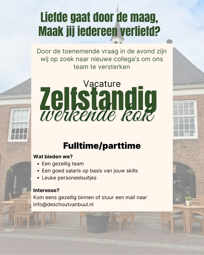 De Schout van Buul zoekt een zelfstandig werkende kok!